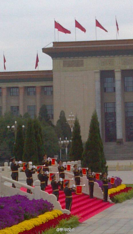新华网北京9月30日电 据新华社“新华视点”微博报道,今天是国家设立的首个烈士纪念日,正值新中国成立65周年之际。上午,习近平、李克强、张德江、俞正声、刘云山、王岐山、张高丽等来到天安门广场,与首都各界代表一起,出席向人民英雄敬献花篮仪式。