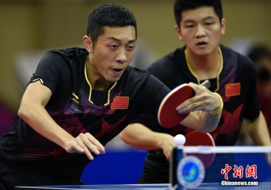资料图:许昕、樊振东参加双打比赛。 中新社发 侯宇 摄