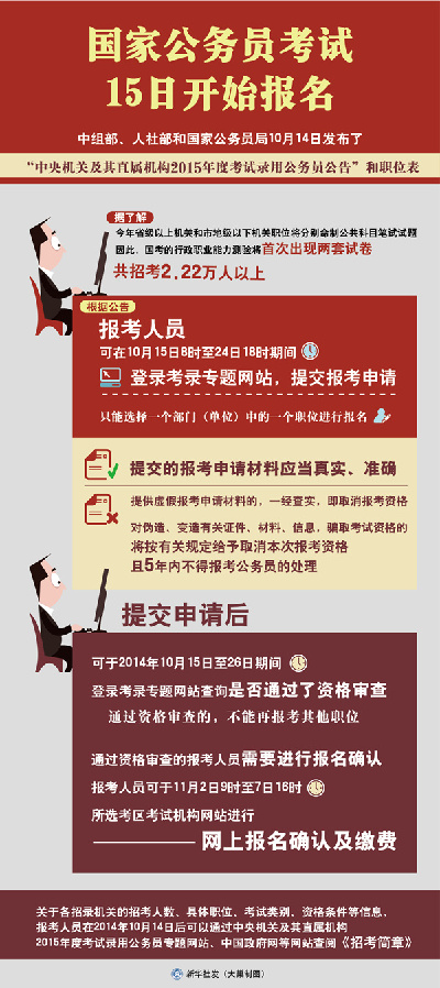 图表:国家公务员考试15日开始报名 新华社发 大巢制图