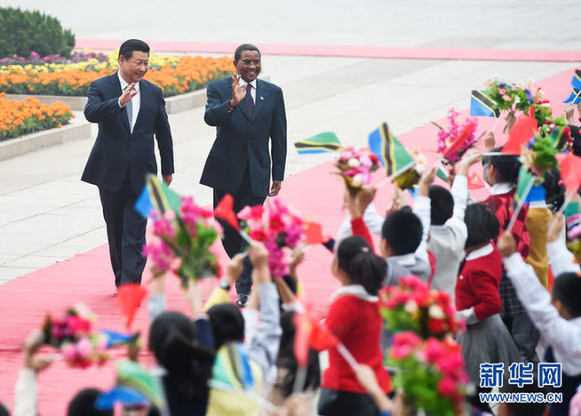 10月24日,国家主席习近平在北京人民大会堂东门外广场举行仪式,欢迎坦桑尼亚总统基奎特访华。 新华社记者 李学仁 摄
