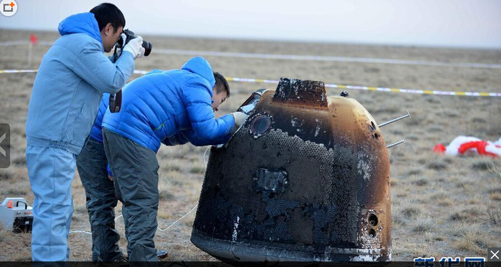 11月1日,经过漫长而充满艰险的返回征程,中国探月工程三期再入返回飞行试验器的返回器成功在着陆区预定区域降落。 新华社记者任军川 摄