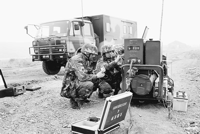 电站抢修小组正在实施某型装备的野外抢修训练。 孟祥飞摄 |