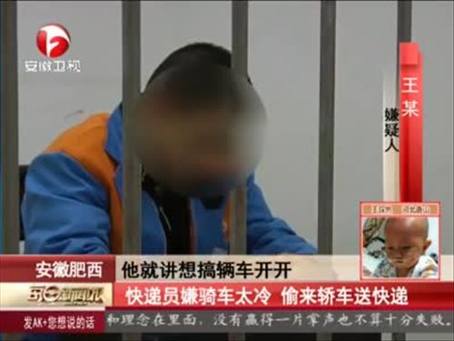 “双十一”过后,数快递员最辛苦了,但是嫌骑车太冷偷轿车送快递的快递员鲜见。据安徽电视台报道,近日,在安徽合肥的快递员汪某、赵某嫌骑车送快递太冷,合计偷车。两人先偷了一辆车,觉得省时舒适,且没有警察找上来。于是两人又偷了一辆,一人一辆开始送快递。目前两人已被警方依法拘留。