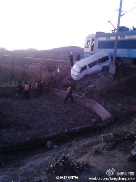 网友@唐山拍客报料:11月17日下午16时左右津山铁路唐山迁安段一处道口发生事故,一辆校车被火车横推出去50余米,车被撞翻,伤亡情况暂不清楚。