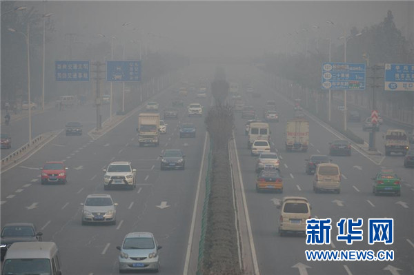 11月19日,机动车在河北省石家庄市东二环主干道上行驶。新华社记者 朱旭东 摄