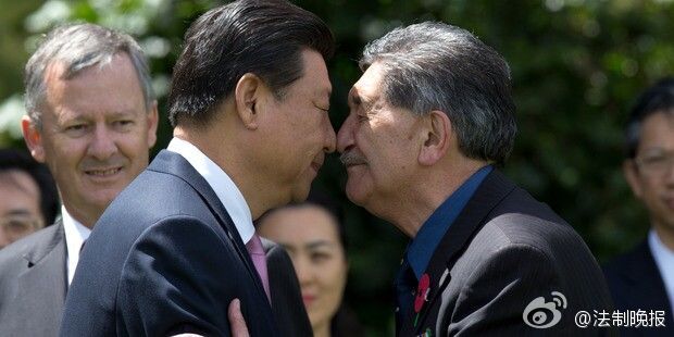 @法制晚报:【习大大接受毛利碰鼻礼】据新西兰天维网报道,正在大洋洲访问的国家主席习近平和夫人彭丽媛抵达新西兰惠灵顿,当地时间午后,习大大在惠灵顿政府大楼前接受毛利人的碰鼻礼。(记者 李志豪)