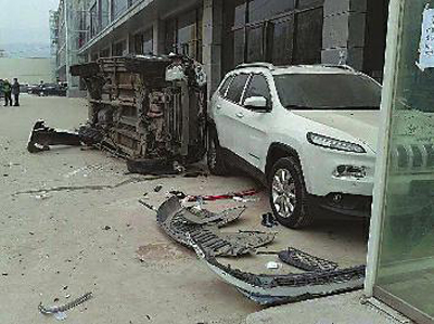 在事故现场,被撞越野车所属的4S店的工作人员正在检查受损的车辆。一名工作人员介绍,唐某共撞坏3辆还未销售的进口越野车,每辆售价都在数十万元。