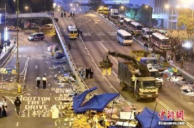 香港警方11日基本完成对中环、金钟地区“占领区”全面清障后,违法“占领中环运动”持续两个多月后进入尾声。,香港社会秩序渐回正轨。从中央政府到香港各界,多方继续推进落实香港政改和特首普选。