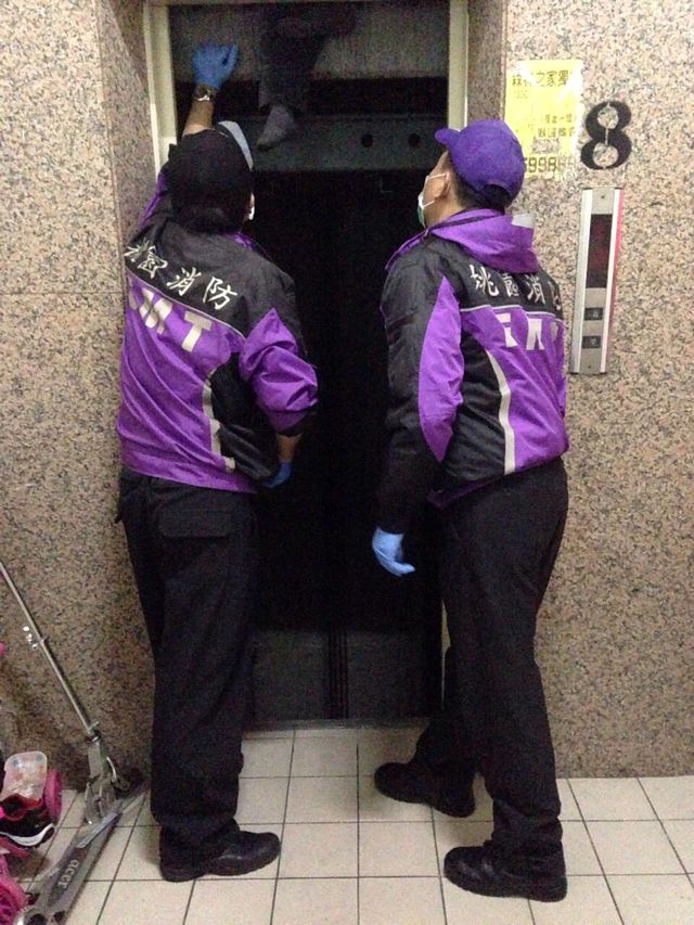 据台湾媒体报道,桃园县平镇市新华路一巷内社区大楼今天上午9时许,徐姓男子(77岁)要从8楼搭电梯下楼时,走入电梯车厢突然一阵晃动,徐往前趴跌,双脚露在电梯门外,这时电梯突然往上爆冲,徐双脚被夹在8、9间动弹不得,徐大声呼救邻居听到出来一看,电梯门半关一双脚露在外面,急打119求救。龙冈消防分队到场花了40分钟将徐救出,双脚虽然有撕裂伤但所幸未骨折。
