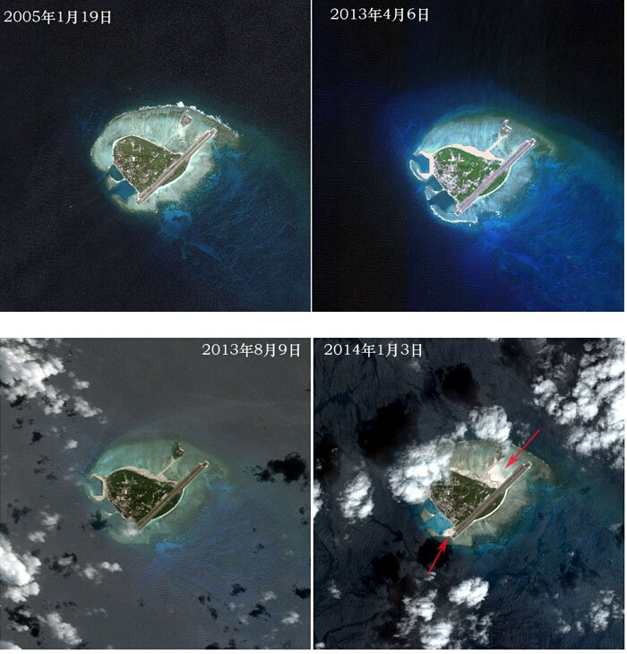 从网友上传的照片来看,同2013年8月相比,永兴岛的面积已经扩大了接近40%,原位于永兴岛东北的石岛也已经本岛融合为一体。此外更令网友关注的是,永兴岛机场跑道的长度增加了大约300米,达到大约3公里级别。此外,跑道以北和石岛之间的澙湖面积也在不断缩小。