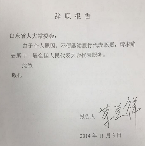 荣兰祥的辞职报告
