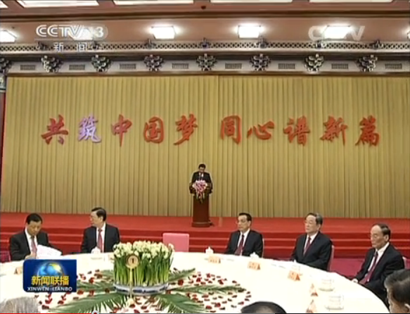 民盟中央主席张宝文代表各民主党派中央、全国工商联和无党派人士讲话,表示将更加紧密地团结在以习近平同志为总书记的中共中央周围,继承和发扬多党合作的优良传统,凝心聚力,锐意进取,共同开创中国特色社会主义事业新局面,为全面建成小康社会、实现“两个一百年”奋斗目标和中华民族伟大复兴的中国梦而努力奋斗。