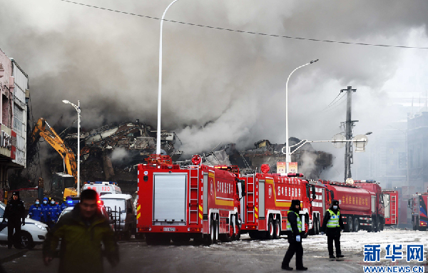 1月2日13时17分,位于黑龙江省哈尔滨市道外区太古头道街的北方南勋陶瓷大市场的三层仓库起火,该仓库存放物品为日用品,大火持续了10个多小时仍未扑灭,2日晚21时37分许,持续了9个多小时的大火导致仓所在的居民楼突然的塌方,将正在救援的数名消防战士压在里面。