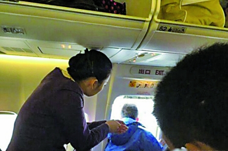 记者了解到,该乘客年龄在30~40岁之间,男性,座位在紧急出口处。