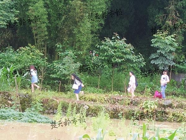为了这场婚礼,化妆师、摄影师、伴娘们也是拼了!路断了,淹了,他们翻山、趟水而来。