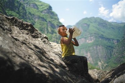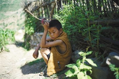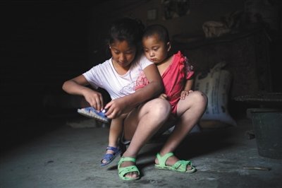 四川凉山彝族自治州昭觉县阿土列尔村位于悬崖上。出入村庄皆走“天梯”,不少路段的陡坡接近九十度。俄的有三和俄的有呷的父母,长期在广东打工。四口人不能经常见面,电话也很少联系。哥哥的鞋子已经磨烂,右脚大拇指露在外面,被问起穿了多久,他摇摇头说很久了,不记得了。