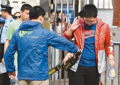 “这是我参加监考这么多年来,最严格的一次高考监考。”在江西南昌二中,一名监考老师表示。每个考场门口,都有监考老师拿着金属检测仪对考生进行一丝不苟的安检,从上到下、从前到后,身上的每一处都要用检测仪扫描一遍。除了准考证和身份证,一支笔芯、一片纸片都不能带进考场。