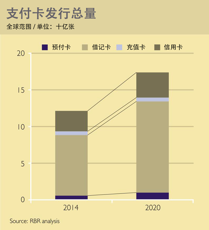 据英国银行业研究公司RBR的《全球支付卡市场数据及2020年展望》报告显示,全球范围内支付卡的发行数量在2014年增长了11%,刷卡支付总金额则增长了13%。上述数字在今后有望持续增长。