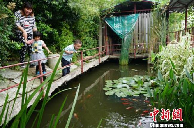 6月16日,江苏金坛直溪镇村民吴建中与其父亲耗时4年打造的水上“小公园”吸引了附近村民带孩子前来游玩。吴建中今年49岁,平时爱好养花种草,是个十足的农村“老文青”,其在4年前花500元买下了一艘破旧的水泥船,当时本打算堆放柴木、杂草,后来为了满足自己的“园林梦想”,吴建中与父亲二人经4年寒暑,将这艘小破船打造成了一个水上“小公园”。吴建中介绍,“小公园”不大,但种植着芦苇、合欢、格桑花、睡莲、美人蕉、三角枫等30多种植物,船身经过改造后,也成了锦鲤的“游乐园”,现在只要到了节假日期间,总有周边的邻居带着孩子和朋友们来其“小公园”游玩。