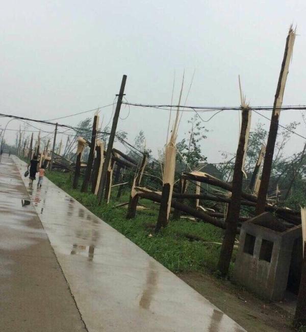 @盐城广播 消息,今天下午两点半左右,阜宁突发龙卷风,伴随着鸡蛋大的冰雹,建筑物被刮倒不计其数,车辆刮翻无数,房屋屋顶被掀,204国道边高压线铁塔被挂断,道路被阻,损失惨重,目前伤亡人数尚不清楚。现场一片狼藉惨不忍睹,让人看了揪心,目前盐城各县都派出三辆救护车以及十多名医护人员前往阜宁参与救援。