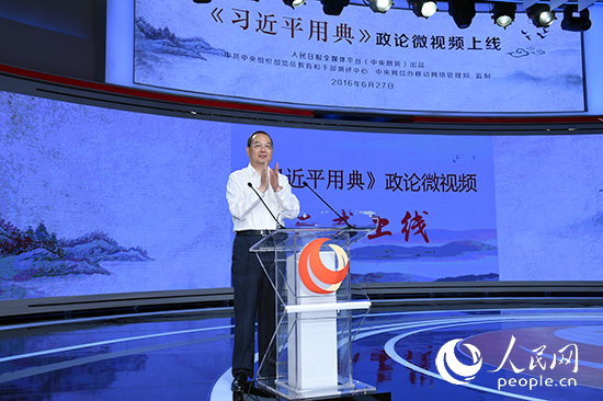人民日报社社长杨振武宣布《习近平用典》政论微视频第一季正式上线播出,并在全网同步推送。(人民网记者雷声 摄)