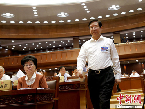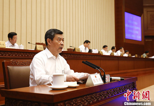 6月27日,十二届全国人大常委会第二十一次会议在北京开幕,全国人大常委会委员长会议提出了关于提请审议民法总则草案的议案。受委员长会议委托,全国人大常委会法制工作委员会主任李适时作了说明。 中新社记者 杜洋 摄