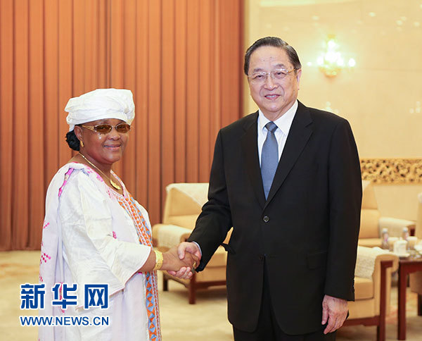 7月22日,全国政协主席俞正声在北京会见几内亚经社理事会主席迪亚洛。 新华社记者 丁林 摄