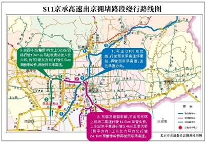 十一假期市民驾车出游较多,预计京藏高速、京港澳高速、京开高速、京承高速、京通快速交通压力相对较大,重要景区景点周边交通将会比较集中,易发生交通拥堵。