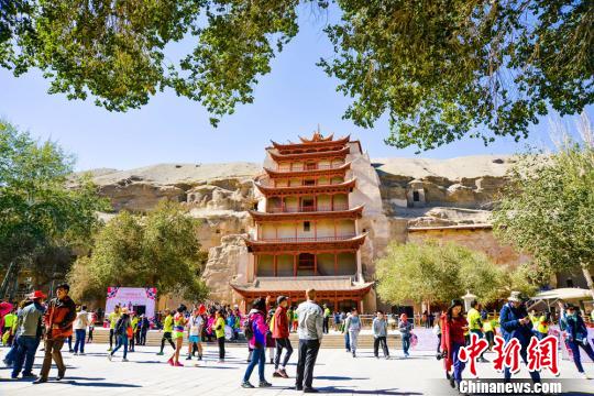 图为10月6日,游客有序在敦煌莫高窟参观游览。 王斌银 摄