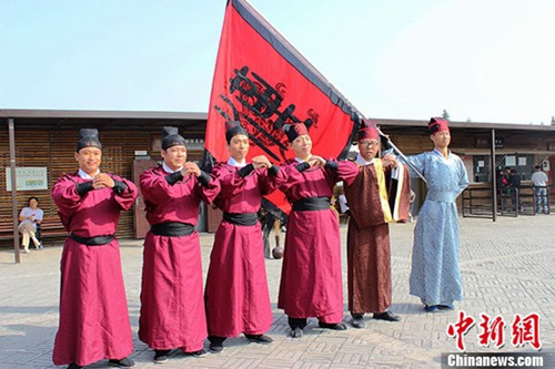 资料图:西安汉服爱好者“习射”庆重阳。图为汉服爱好者“习射”活动现场。王超 摄