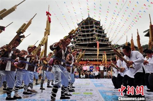 资料图:湘黔桂千名芦笙手赛芦笙庆重阳节。图为芦笙比赛现场。龚普康 摄