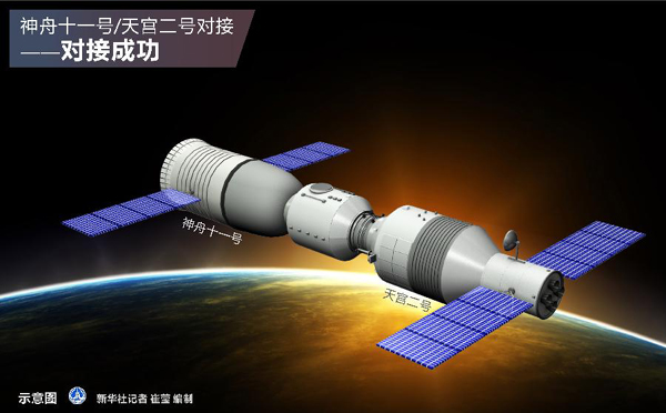 图表:神舟十一号/天宫二号对接——对接成功新华社记者崔莹编制