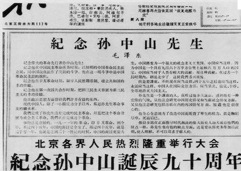 这是毛泽东同志为纪念孙中山先生诞辰九十周年写的文章。刊载于《人民日报》(一九五六年十一月十二日)
