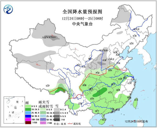 中央气象台预计,24~26日,我国中东部地区将有一次大范围雨雪天气过程。西北地区东部、华北、黄淮等地将有小到中雪或雨夹雪,局地有大雪;南方大部有小到中雨。
