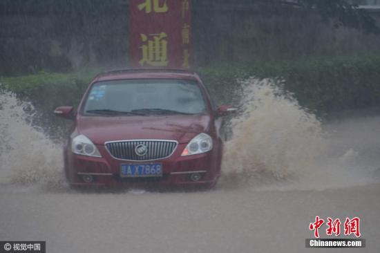 资料图:10月13日,海南琼海市民在暴雨中出行。蒙钟德 摄