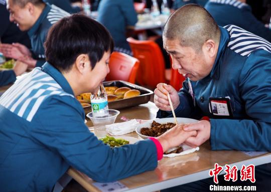 黑龙江:38对“服刑夫妻”高墙内吃团圆饭 李炜 摄