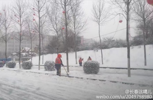 昨天,吉林长春市区出现积雪。图片来源@微博网友