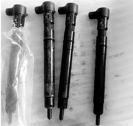 第3天,李先生把车从杭州拖回了东阳。将车送到东阳市国良爱车生活馆,维修技师张国良告诉记者,他对李先生的车一一进行故障排除,先是发现喷油嘴保险盒里有一根保险丝被人为拔掉了。后来发现启动时,4个喷油嘴只有一个正常工作,其它3个没工作的喷油嘴,编码与原车对不上。而且这3个中有一个还在漏油,里面少了一块铜片,柴油都流到机油里面了。李先生致电杭州庞大龙腾的修车师傅,对方说,是换了3个旧的喷油嘴用来试车。