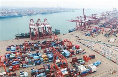 青岛港一景。潘 炳摄(人民视觉)