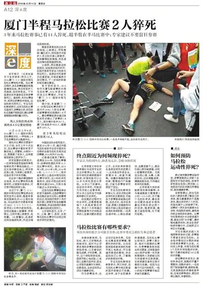 去年新京报关于厦门半马发生跑者猝死事件的报道。