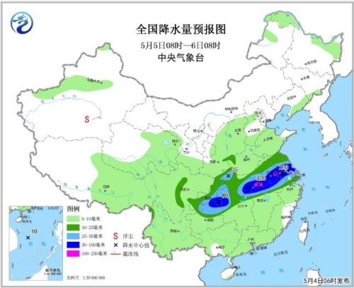 图1 全国降水量预报图(5月4日08时-5日08时)