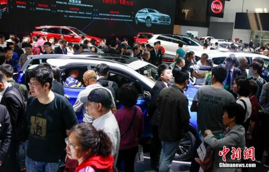 4月29日,2018北京国际车展上参观车展的观众摩肩接踵。中新社记者 贾天勇 摄