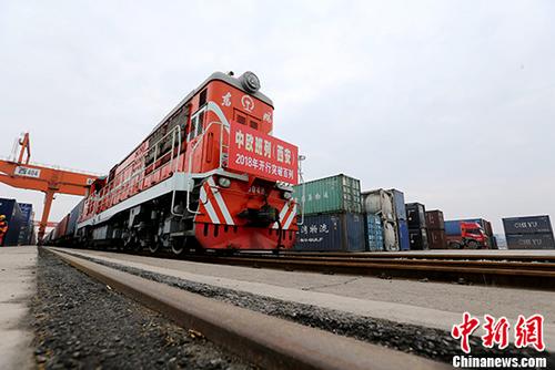 今年一季度“长安号”班列出口贸易国从24个增加到30个。图为中欧班列驶出车站。张远 摄