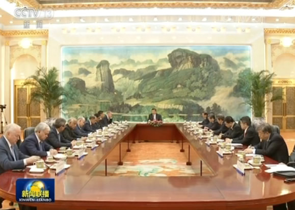 央视网消息(新闻联播):5月22日,国家主席习近平在人民大会堂集体会见来华出席上海合作组织成员国安全会议秘书第十三次会议的外方代表团团长。