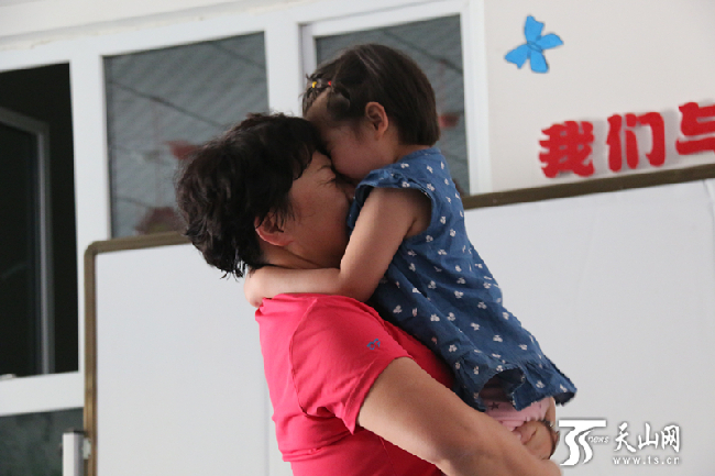 当小三班教室的门打开,3岁的热依曼·阿不来提探出小脑袋,看“奶奶”站在门外,她冲出教室,撞进“奶奶”怀中,小手搂着脖子再没撒开。