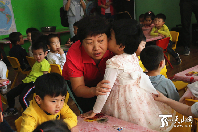 “热依曼是幼儿园里最黏郝姨的孩子。”看到这一幕,幼儿园园长王晶说,不光是热依曼,园中师生都对郝姨有着特别的“依赖”。