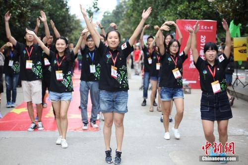 资料图:2017年9月9日,南京农业大学农学院的学生用舞蹈迎接新生。中新社记者 泱波 摄