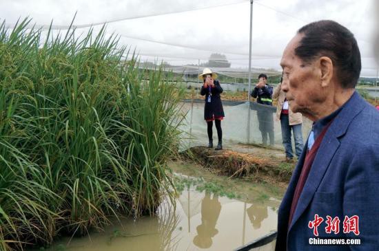 中国工程院院士袁隆平:带盐碱的材料做亲本,再利用这个杂交优势(产量)一下就提高了,去年我们小区的产量过了600公斤。
