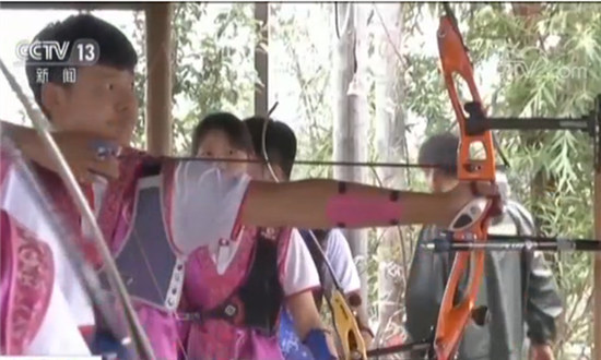 锡伯族学生杨诗雨:我爸爸在我小时候也是(经常)射箭的,那时候我觉得瞅他挺帅的,我也想试试,后来发现我们学校有专业队,我就去试一试。