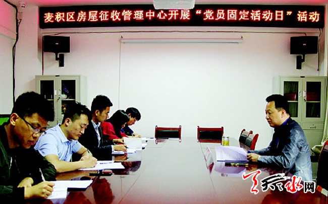 麦积区房屋征收管理中心始终把党建工作摆在重要位置,以党建为引领,深入开展两学一做学习教育活动、党员固定日和三会一课活动。党建引领不仅提升了党员干部的素质,促进了征迁工作的有效开展,而且在精准扶贫工作中起到了积极作用。